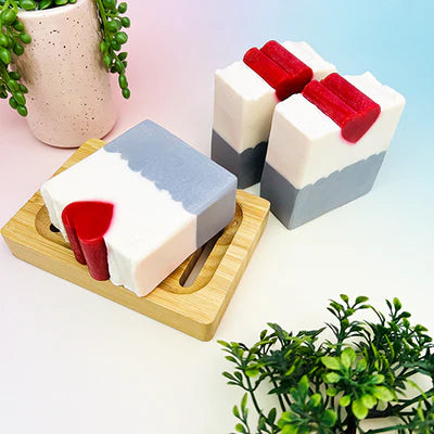 Our Love Story soap with sugary sweet notes of jasmine makes your skin soft and smooth. This soap is refreshing and nourishing and is made with natural ingredients. This soap is formulated with without the use of harsh chemicals making it gentle on the skin and is suitable for all skin types. It helps to cleanse skin effectively, remove dirt, excess oil without striping away its natural moisture. Make your soap last longer by keeping it dry between uses. Please use a soap dish that drains and keep it away from direct streams of water.