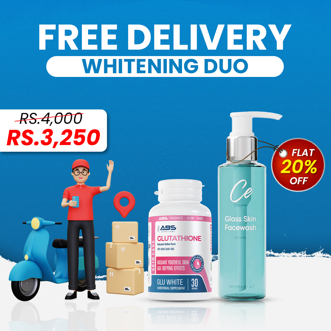 Get the perfect duo for radiant, glowing skin with this bundle. It includes ABS Nutritions Glutathione, a powerful formula for full-body whitening and brightening, and Chicelle Glass Skin Face Wash, designed to deeply cleanse, refresh, and leave your skin smooth and luminous.